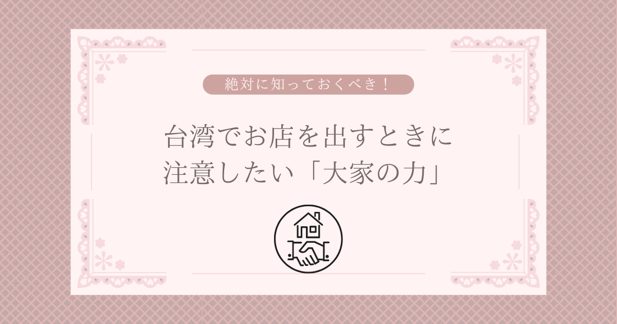 台湾でビジネスを始めるにあたって、まず最初に直面する壁のひとつが不動産契約です。特に店舗物件を借りる場合、日本とは比べ物にならないほど「大家(オーナー)」の力が強いことを知っておく必要があります。