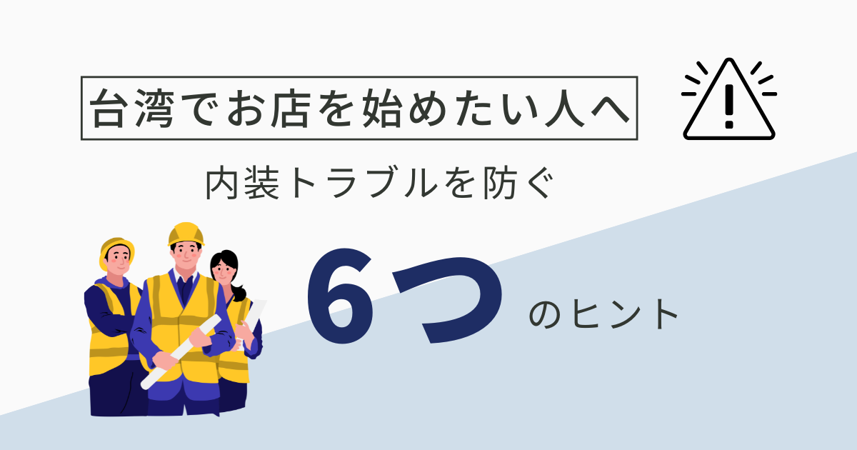 今回は、実際に台湾で開業した方々の声や、内装トラブルを経験した自分自身のエピソードを交えて、台湾でお店を始める人が“必ず押さえておきたい6つのポイント”をまとめてみました!